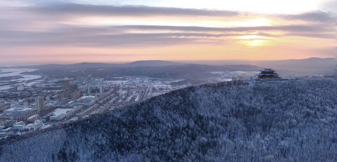 1月4日在黑龙江省抚远市东极阁拍摄的雾凇景观(无人机照片)。 新华社发(曲玉宝摄)所以