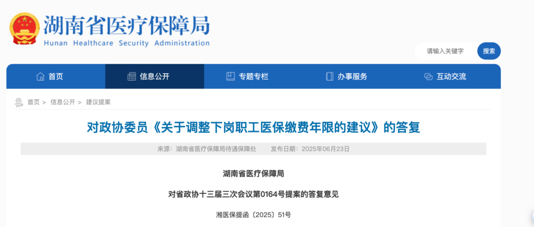 2025年6月,湖南省医保局在一则答复中,明确职工医保缴费年限相关规定。
