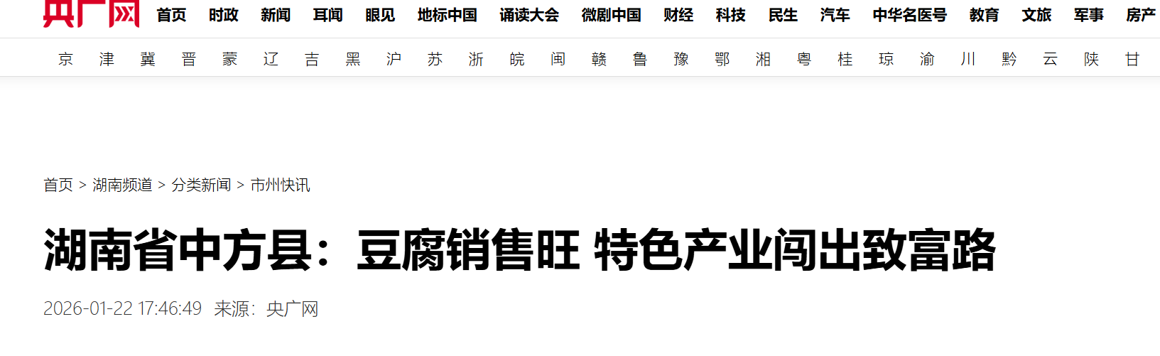 央广网|湖南省中方县:豆腐销售旺 特色产业闯出致富路