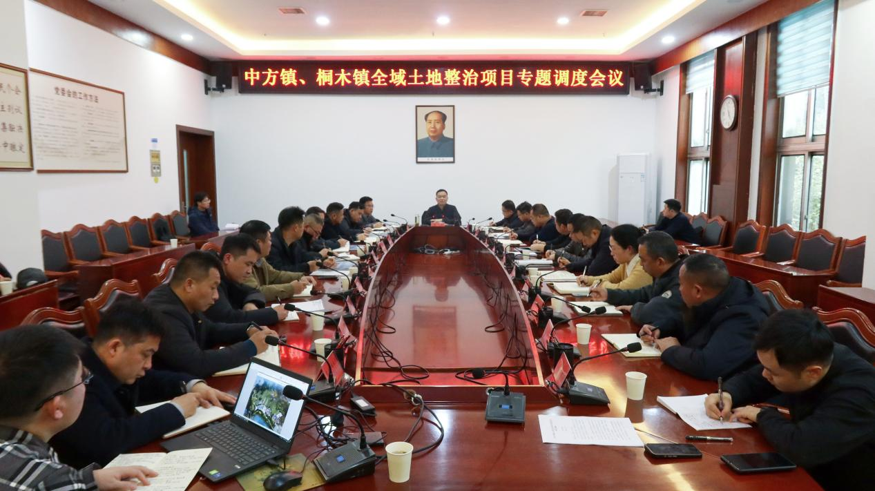 中方融媒1月26日讯(记者:谢文清)1月26日,县委书记胡杰主持召开中方镇、桐木镇全域土地整治项目专题调度会议。他强调,要深入学习贯彻习近平总书记关于国土空间规划和推进乡村全面振兴的重要论述精神,认真落实省委、省政府和市委、市政府部署要求,以资源集约高效利用为核心,以产业融合发展为导向,推动项目高标准规划、高质量建设、高效率落地,如期兑现民生承诺、彰显整治实效。县委副书记、县长周华特,县领导杨志初、杨小华、贺爱平参加。