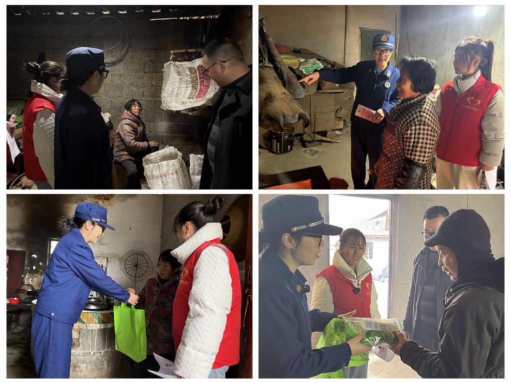在完成专业培训后,县消防救援大队联合“四级消防宣传力量”与受训合格的消防志愿者组成专项工作小组,来到辖区开展“敲门入户”宣传活动。工作小组走进独居老人、留守儿童等特殊关爱群体家庭,认真开展消防安全检查,细致排查电器线路、取暖设备等安全隐患,并用当地方言面对面讲解冬季用火用电安全注意事项,确保安全知识听得懂、学得会、用得上。“礼包虽小,心意却重,既讲安全,又送温暖。”每到一户,工作组在完成安全隐患排查和知识讲解后,都会送上一个特别的“冬季安全礼包”,里面装有符合安全标准的新国标插线板、图文并茂的消防安全手册等实用物品。