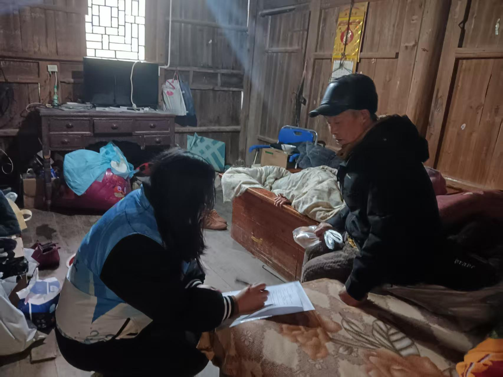 现场,社工与村干部走入十户家庭,为他们送去包括食品、防寒衣物在内的暖心物资,并与群众亲切交流,详细了解他们的生活状况与实际困难。同时,针对冬季取暖安全风险,志愿者们化身“安全宣讲员”,耐心讲解如何安全使用电器和防火知识,并协助检查了部分家庭的老旧线路与取暖设施,进一步排除安全隐患。