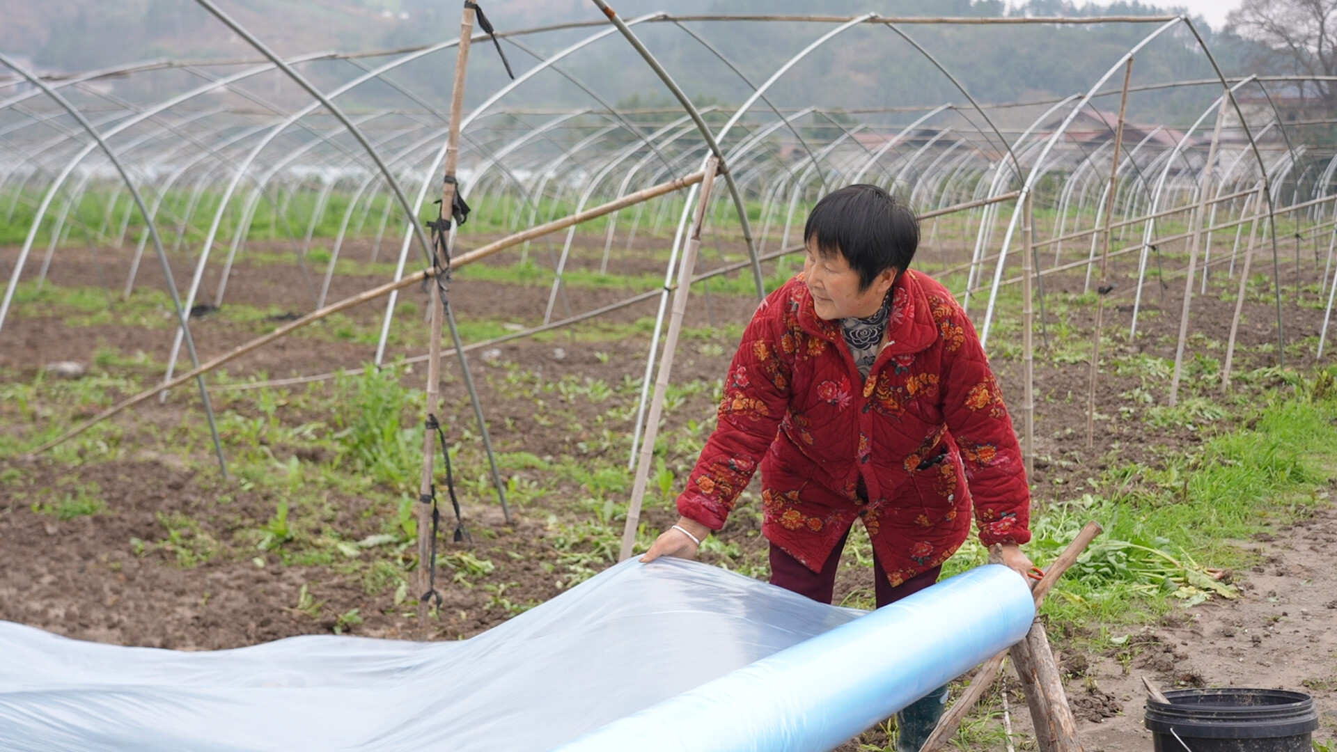 “这两天我们天天在田里拉地膜,一刻也不敢耽误。”正在劳作的瓜农黄桂莲笑着介绍道,地膜不仅能有效抑制杂草生长,减少除草人工成本,还能锁住土壤水分、提高地温,为西瓜苗生长创造适宜的环境。她表示,地膜全部拉好后,等天气转晴,就会立刻搭建天膜、铺设滴灌地管,再过两天就能栽种第二批西瓜苗,目前基地的西瓜苗已顺利移栽三分之一,预计后续将稳步推进栽种工作。