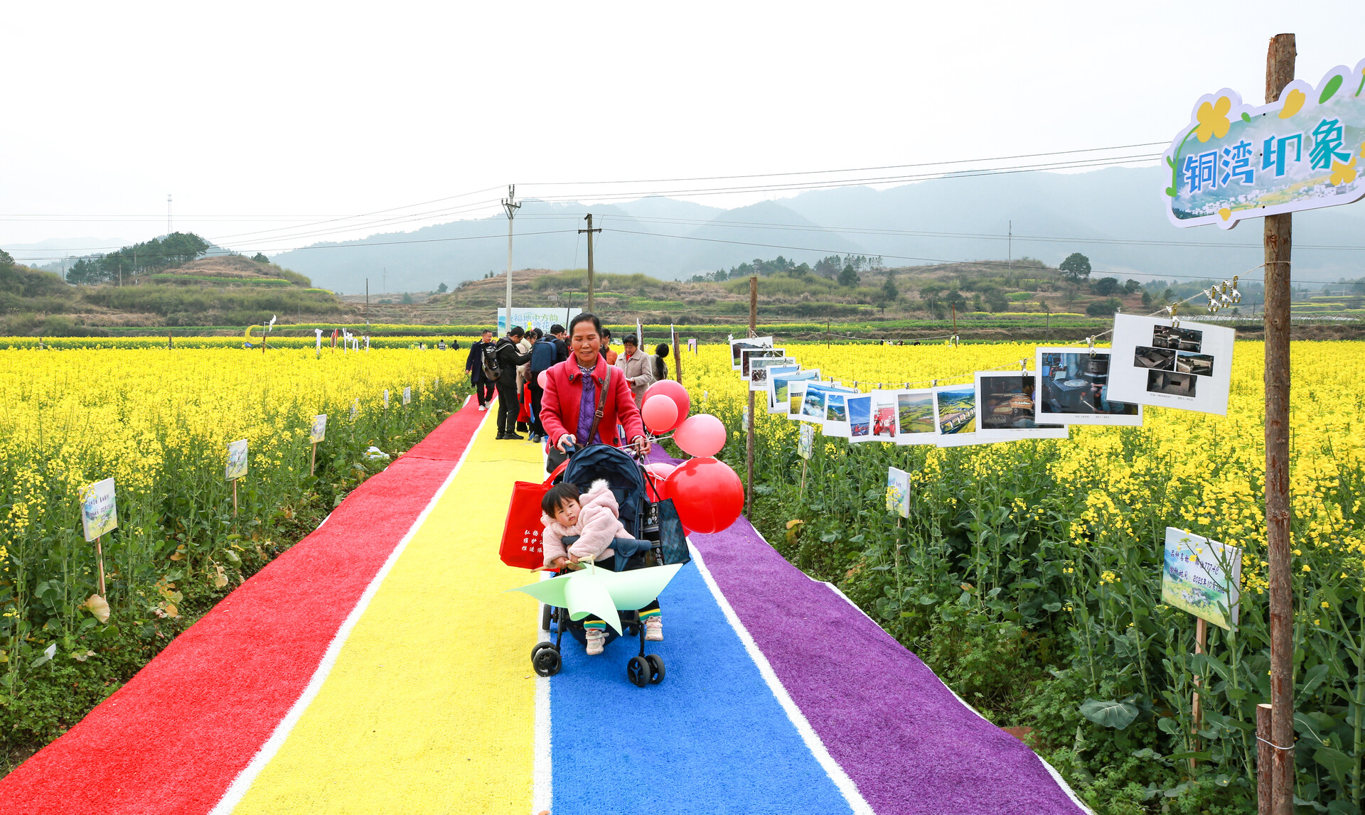 飞驰的高铁列车不时从花海边缘穿行而过,以时代“加速度”连接山水与远方。铜湾镇以花为媒、以乐会友,推动区域交通优势与生态文旅深度融合,借助互联网传播裂变,让“诗画中方,多彩铜湾,梦里水乡”的形象深入人心。