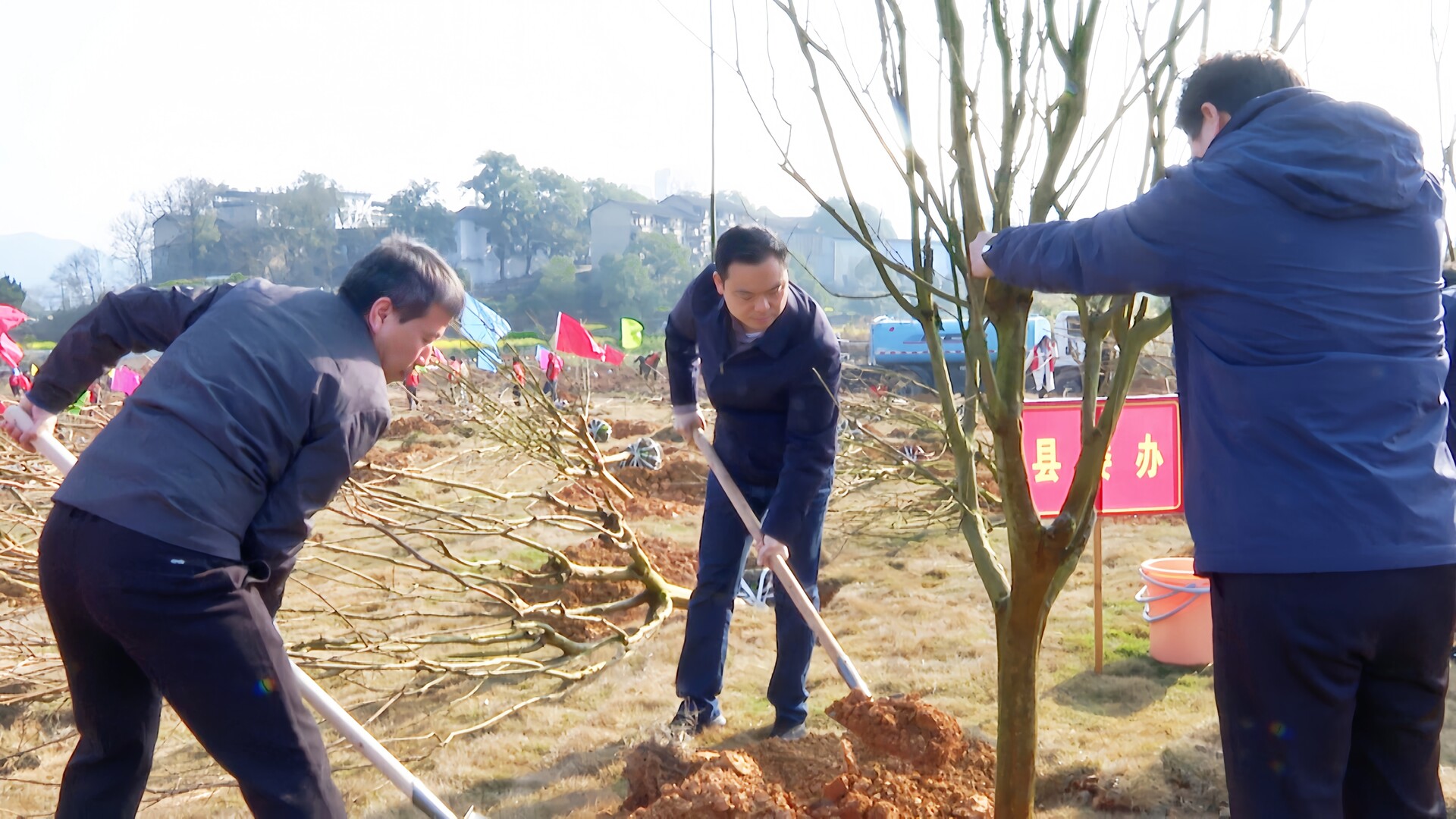 植树现场暖意融融、干劲十足,一派热火朝天的劳动景象。胡杰、周华特等县领导与干部职工们分工协作、默契配合挥锹挖坑、扶树正苗、培土压实、浇水定根,每一道工序都严谨细致、一丝不苟,用汗水浇灌绿色希望。经过一番紧张有序的忙碌,一棵棵新植的紫薇树苗迎风挺立、错落有致,枝叶舒展间孕育着蓬勃生机,为初春的中方大地增添了一抹亮丽的绿色景致。植树间隙,胡杰、周华特不时与干部职工亲切交谈,详细询问紫薇苗木的品种特性、生长周期及后期管护措施等情况,反复叮嘱相关部门要坚持系统思维,严格落实管护责任,做到栽管并重、精细养护,切实提高苗木成活率。