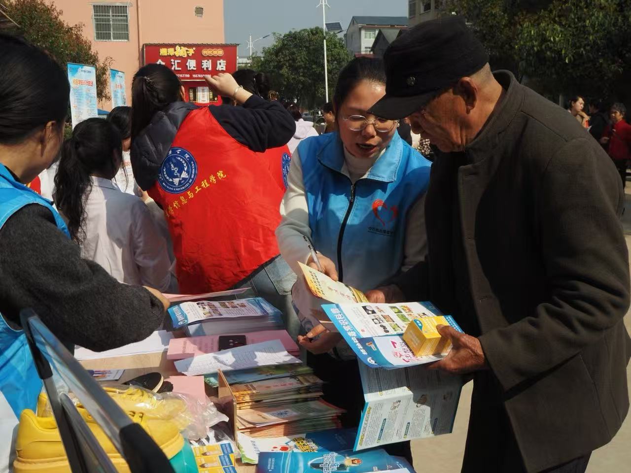 活动现场暖意融融,各个服务点位前人头攒动,志愿者们以饱满的热情为居民提供精准贴心的服务。健康义诊区,高校师生志愿者充分发挥医学专业优势,免费为居民测量血压、血糖,细致记录健康数据,针对高血压、糖尿病等常见慢性病给出个性化健康指导和饮食建议;现场演示心肺复苏、海姆立克急救法,手把手指导居民实操,同步科普医学影像检查相关知识,发放健康宣传手册,引导居民树立科学的健康理念。