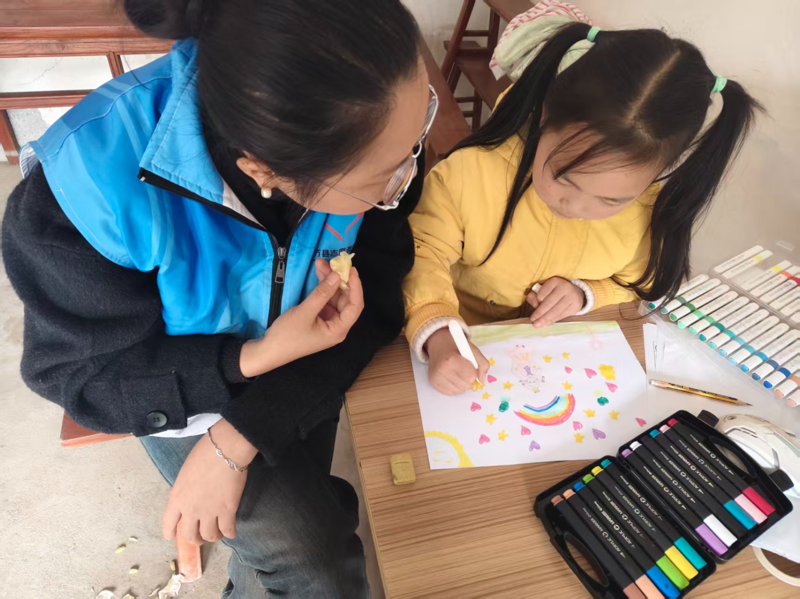 志愿者们为孩子们送上爱心衣物、奶粉、维生素D等生活与营养物资,与儿童及监护人亲切交谈,耐心询问孩子的生活起居、学习情况和身心健康状态,细致了解家庭当前面临的实际困难。为拉近与孩子的距离,志愿者们还陪孩子阅读绘本、画画、做趣味小游戏,用温暖的陪伴驱散孩子的腼腆与陌生,让孩子们在互动中感受关爱与温暖。
