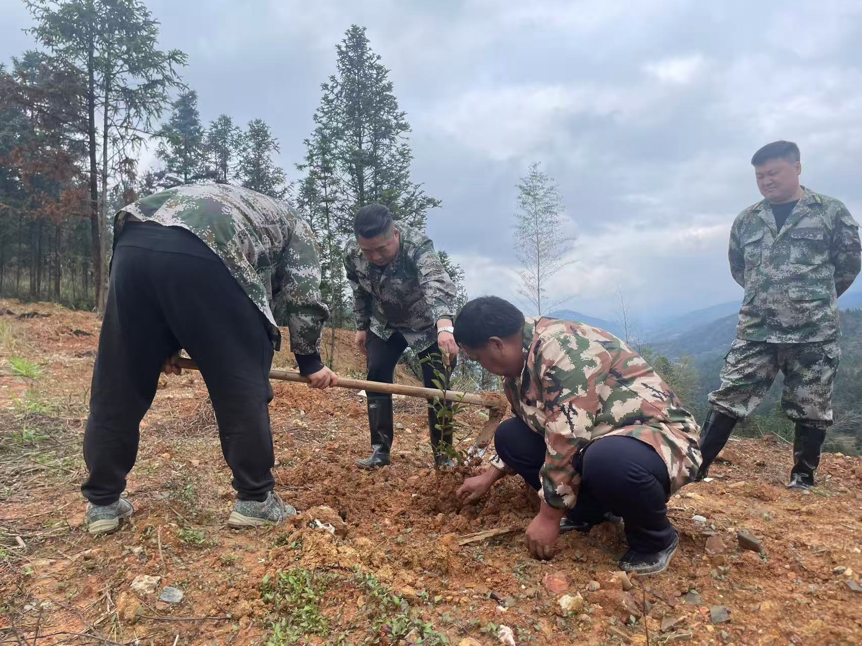 中方融媒3月24日讯(通讯员:周国庆)3月24日,接龙镇组织党员干部、基干民兵、志愿者及当地群众,开展春季义务植树活动,以实际行动为生态增绿添彩。