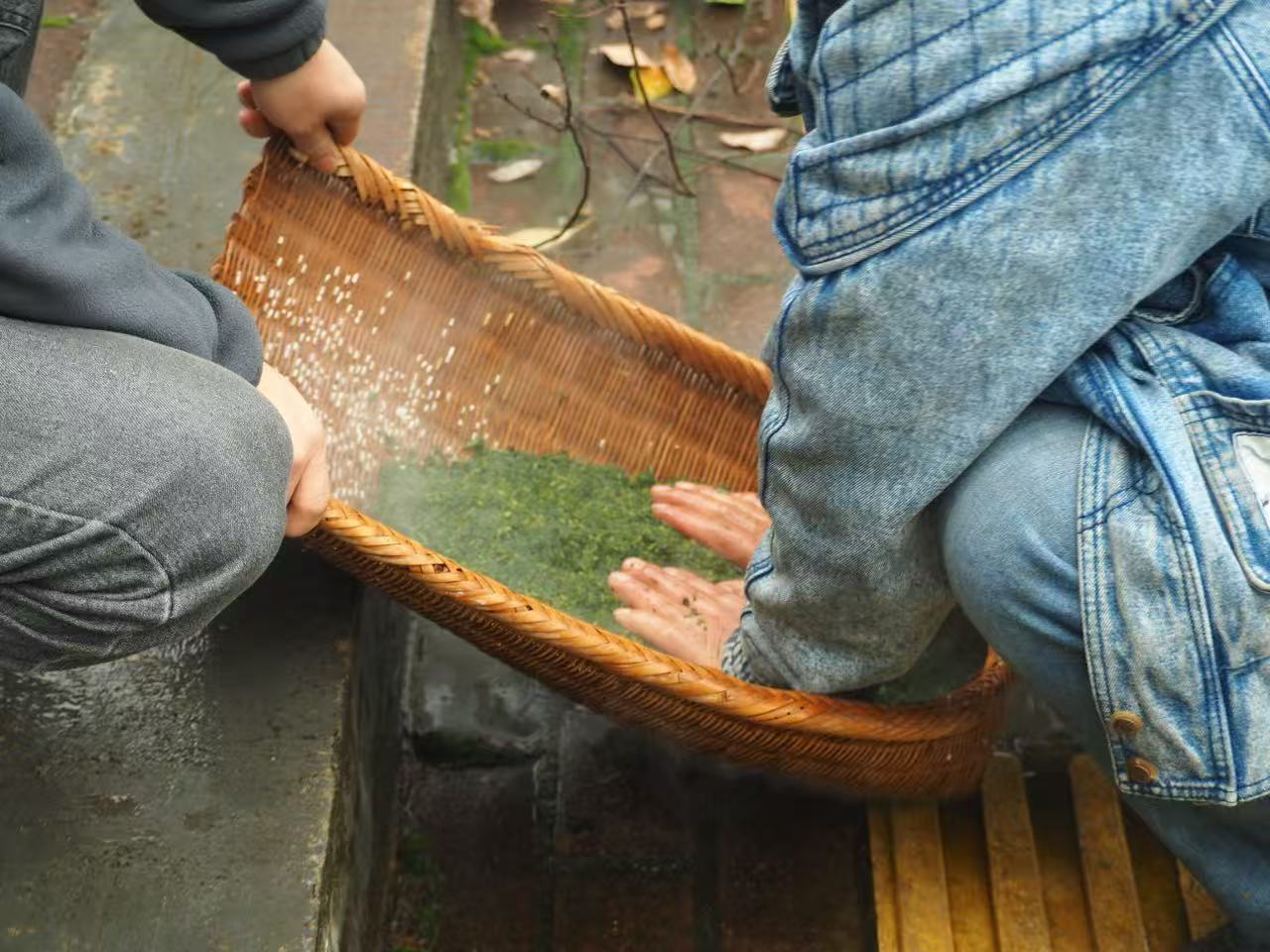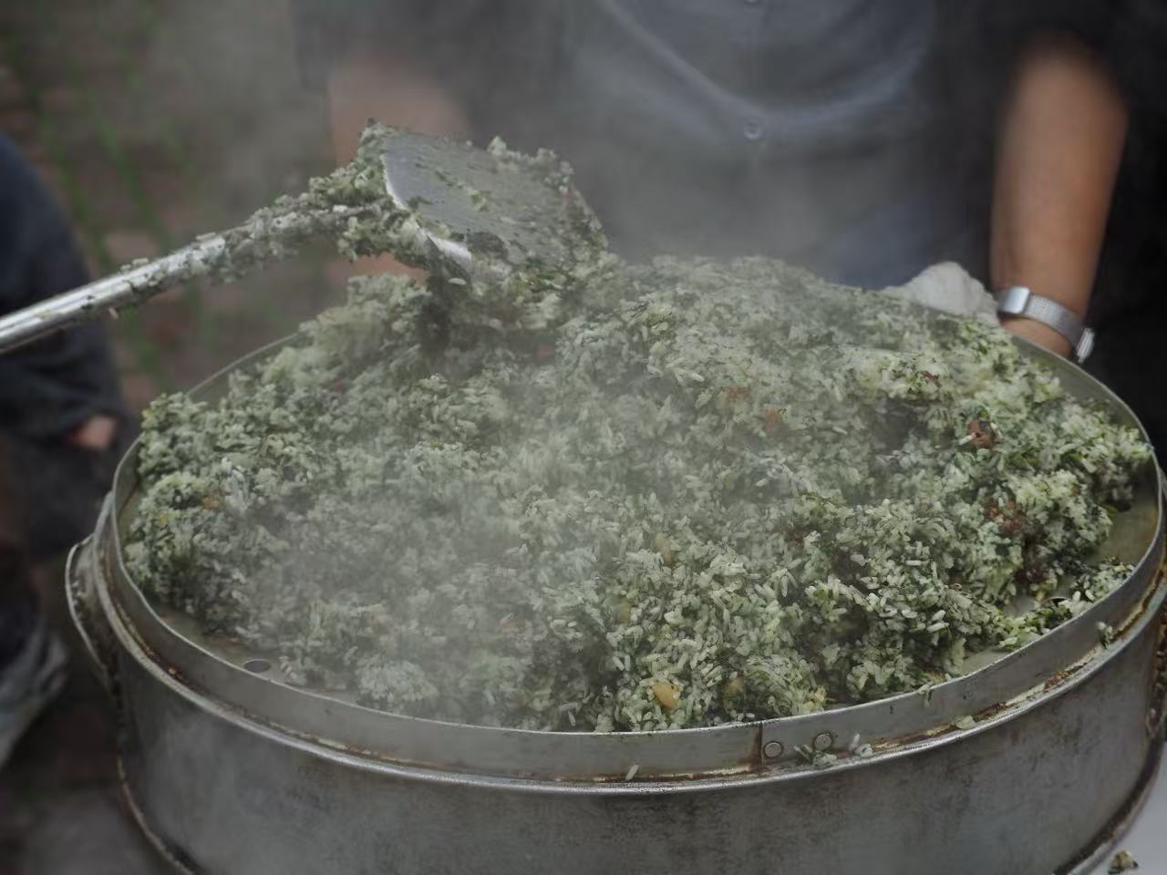 随后,“传统社饭制作与清明青团体验”正式拉开帷幕。本次民俗体验活动紧扣清明时节特色,特别邀请了社区孤寡老人、拥有传统手艺的老年人代表参与其中。活动现场暖意融融,老人化身“民俗传承人”,手把手向中青年传授社饭、青团的古法制作技艺,从食材甄选、配比把控,到揉面拌馅、包制蒸制的每一个步骤,都耐心讲解、细致示范;同时还为大家讲述清明食俗背后的历史渊源、文化内涵与乡土记忆,让传统民俗文化在口传心授中实现活态传承。中青年认真聆听、积极上手,在沉浸式的制作体验中,既掌握了传统民俗手艺,也在与老人的近距离交流中拉近了邻里距离,深刻体会到传统民俗里的烟火温情与文化底蕴。针对社区孤寡老人,社工与志愿者全程贴心陪伴,邀请老人共同参与制作、分享劳动成果,让老人们在热闹温馨的氛围中感受到社区大家庭的关怀,切实实现老有所乐、情有所依。