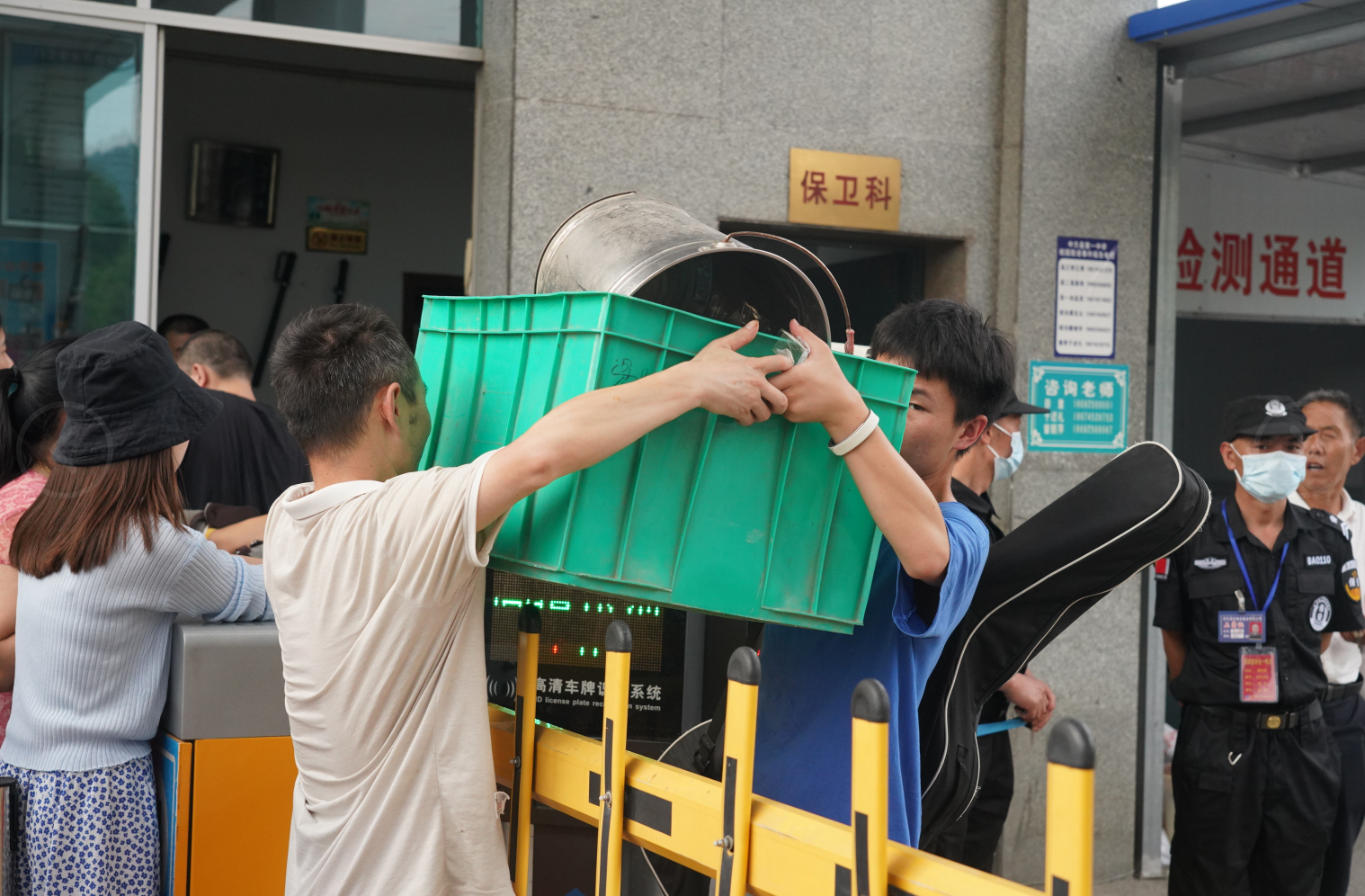 考试结束之后,学生们收拾好行李,开始一包包一袋袋的往外运。