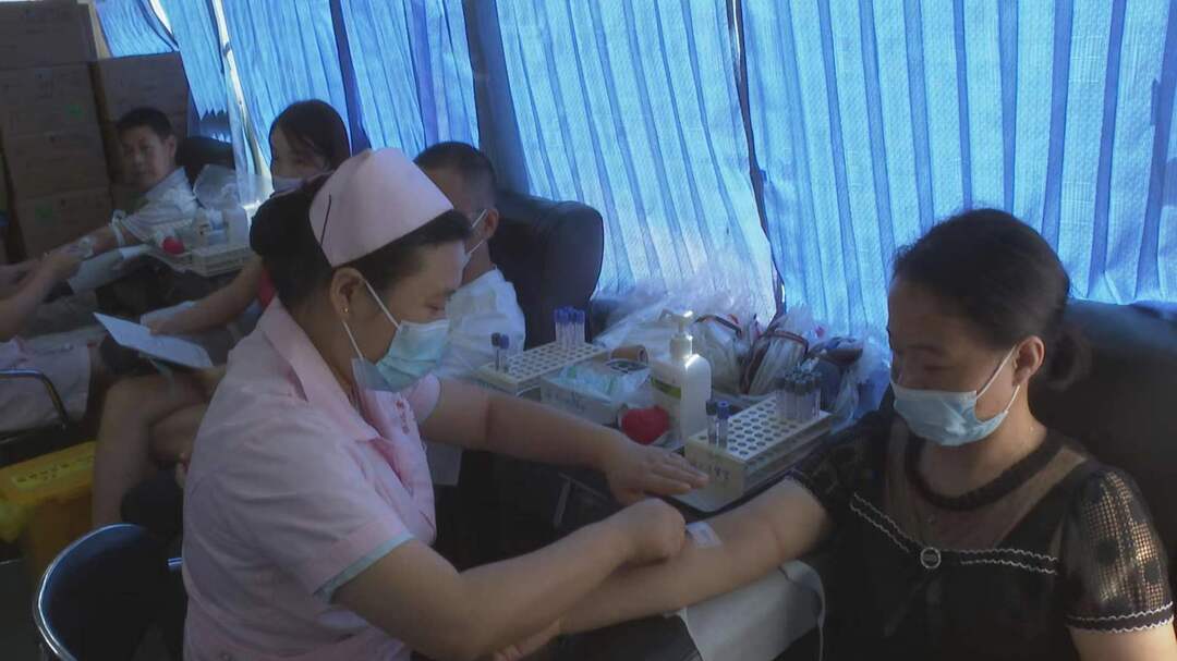 献血现场,前来献血的干部职工有序地配合工作人员完成依次进行登记、血液检测、录入信息,确认血液合格后,在献血车内有序地进行采血。