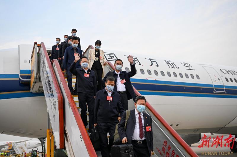 (代表们走下舷梯。以上图片均由湖南日报全媒体记者 唐俊 摄)