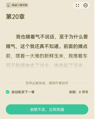 一种是采用按章节收费的方式,价格不确定且不同章节需要的阅读币数量也不同。记者在羽翠小说APP上尝试按章购买,花费107元充值两次,获得1.04万阅读币,加上免费阅读部分只读了300多章,该小说已连载500多章且未完结。