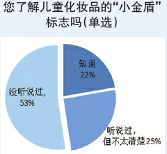 但在本次调查中,53%的家长表示没听说过“小金盾”标志,25%的家长表示听说过但不太清楚,只有22%的家长听说过“小金盾”标志。这也说明有关部门在出台相关政策法规时,除了重视落实监管,也要在科普宣传上持续发力,形成政府、行业、企业、家长监督和生产高质量儿童化妆品、正确使用儿童化妆品的多重合力。(本文图表数据来源:瑞安市消保委)