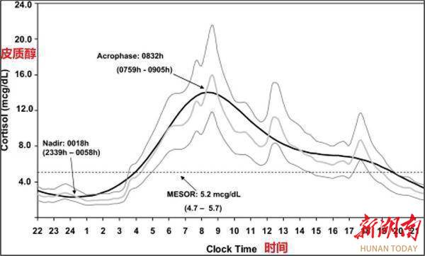皮质醇分泌具有昼夜节律性。早晨8点左右皮质醇水平最高,下午时它就会下降,最低点大约在凌晨2点。