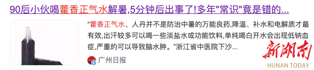 但在医生看来,藿香正气水含有酒精,并非所有人适合,乱服还可能加重中暑症状。