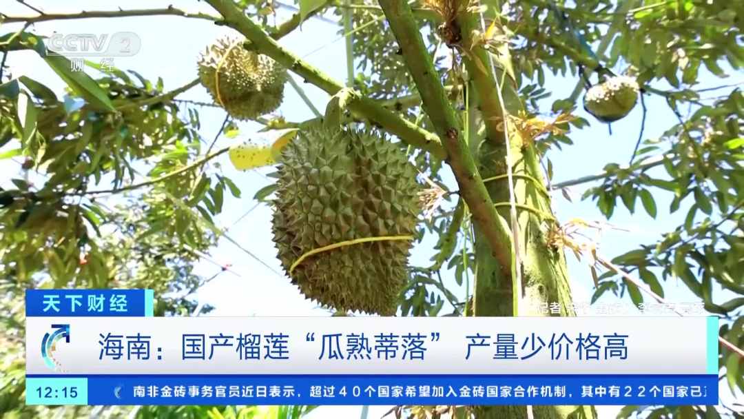 榴莲被誉为“水果之王”,在海南实现规模化种植后,一直受到国内消费者的关注。这几天,海南三亚的部分榴莲进入成熟期。目前,国产榴莲的产量怎么样?价格又如何?