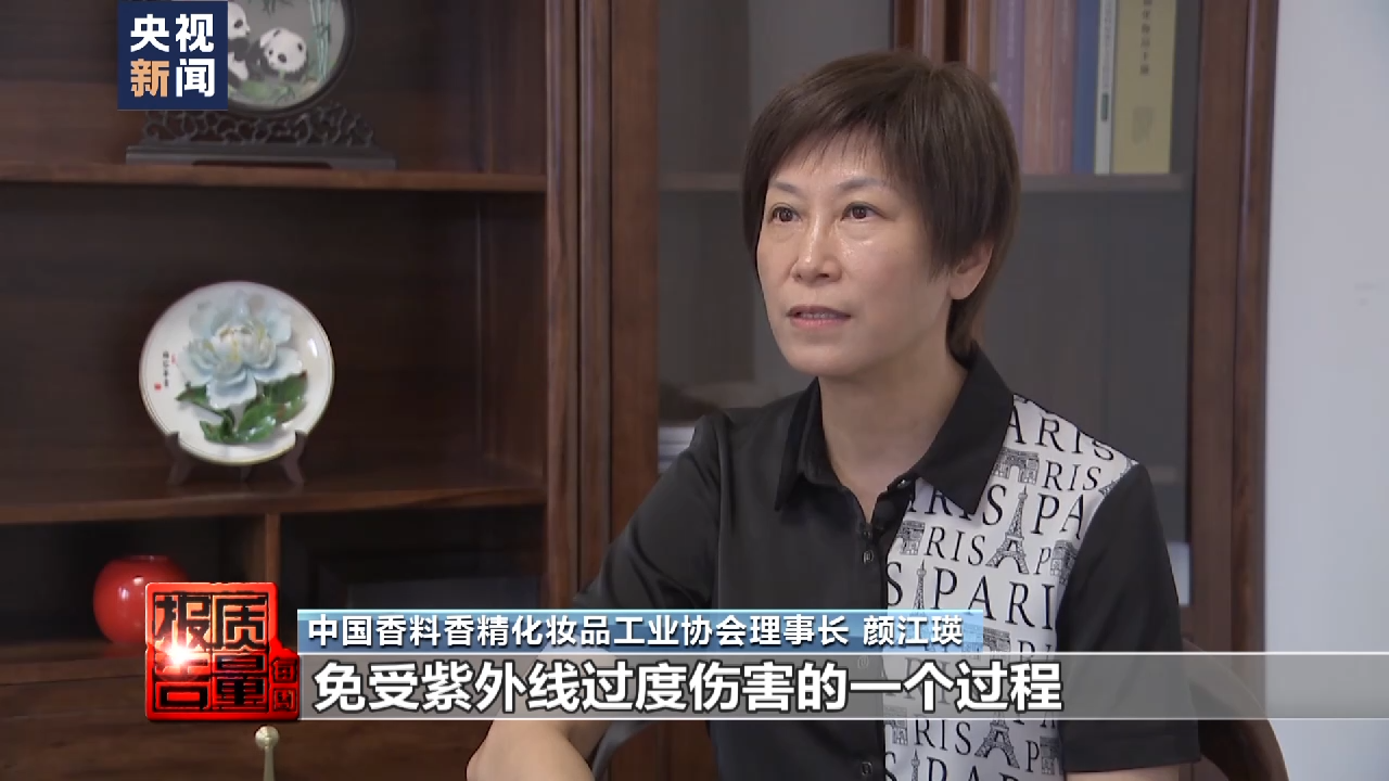 中国香料香精化妆品工业协会理事长 颜江瑛:这个黑色素的形成是人体的一个正常的生理功能,它也是保护我们的皮肤免受紫外线过度的伤害的一个过程,当然,追求美有的人是希望黑色素少一点,能够更美白一些,那就会通过一些防晒的这种手段,物理的防晒,或者说我们涂抹防晒剂来减少黑色素的生成。同时也是保护皮肤免收紫外线的伤害,当然了,我们也不能过度地去干扰或者是阻止黑色素的形成,它毕竟是我们身体的一个保护功能。