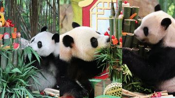 为此,广州长隆野生动物世界的工作人员精心准备了别样生日礼:“萌萌”的公主房、“帅帅”的粤式龙舟,“酷酷”的遥控小火车,以及食材丰富、营养均衡的“竹子蛋糕”。