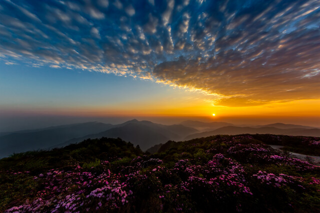 日出或日落时,云海被镀上深浅不一的橙黄,人间仙境又多了一番浪漫。闭上眼睛,软绵绵的云朵抚慰着疲惫的心灵。不知不觉,好像进入了被云海卷起的梦,温柔无边。