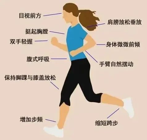 2.脚掌着地的方式:跑步时要从脚跟快速过渡到全脚掌,然后到脚尖,这是一个缓冲的过程,脚跟着地、全脚掌着地、脚尖先着地都是不对的。(脚跟着地对膝关节的冲击比较大,容易造成膝关节炎症;全脚掌着地则会造成踝关节的伤害,是引发胫骨骨膜炎的元凶;而脚尖着地则会对小腿肌肉造成强烈刺激,肌肉容易拉伤,并且小腿变粗形成“萝卜腿”。)