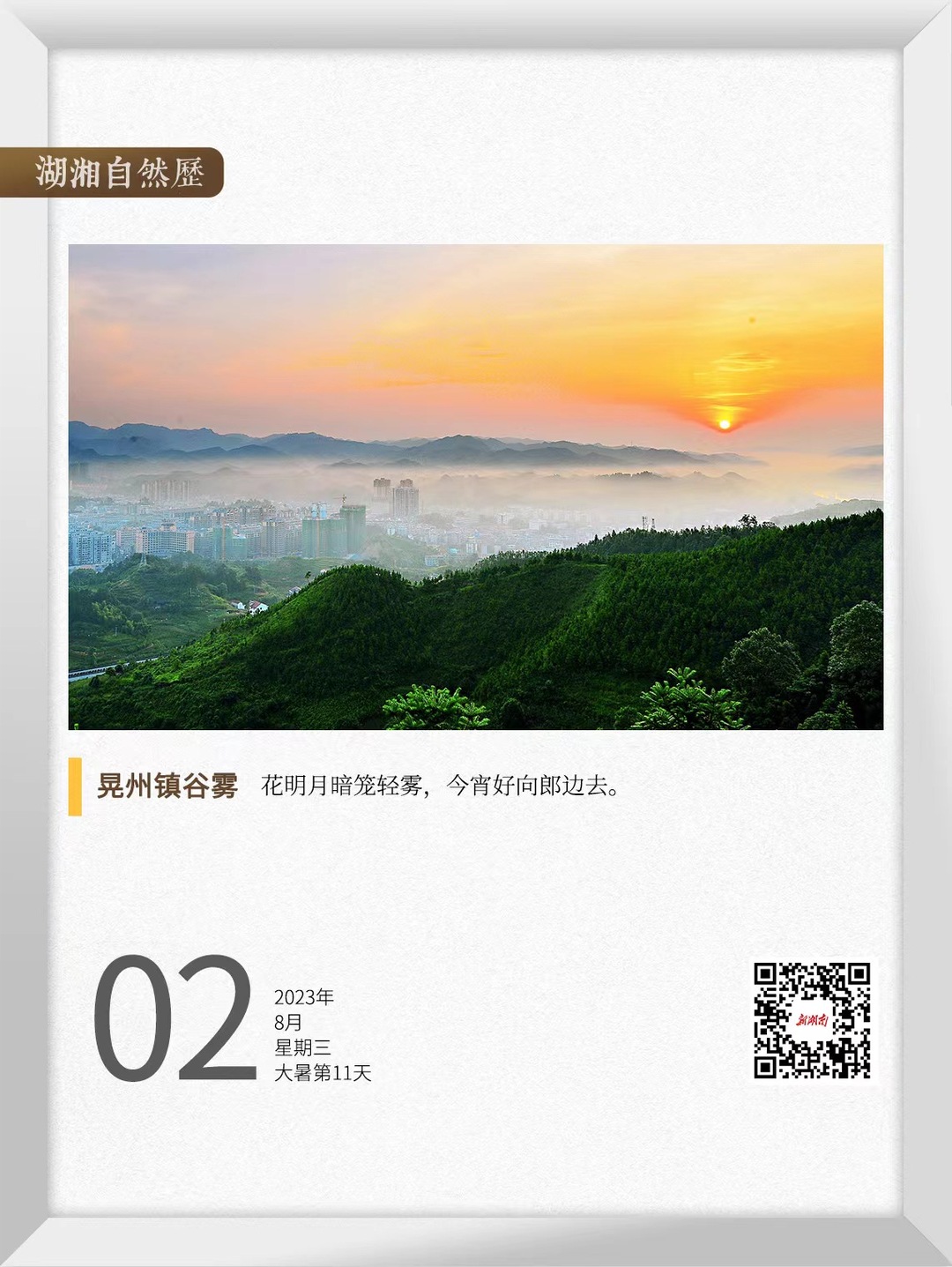 晃州镇谷雾 晃州镇位于怀化市新晃侗族自治县北部,属于亚热带季风湿润型气候,四季分明、光照适宜,湿度大,春夏降水多,据统计,近年来年均气温17.2摄氏度,平均最高气温22.5摄氏度。地形地貌结构多变,多山峰和山谷、峭壁陡崖,地势起伏跌宕,境内水资源丰富。当较重的冷空气移至山谷里,将谷底原来较暖的空气抬挤上升,因独特地形产生温度逆增现象,从而形成谷雾。
