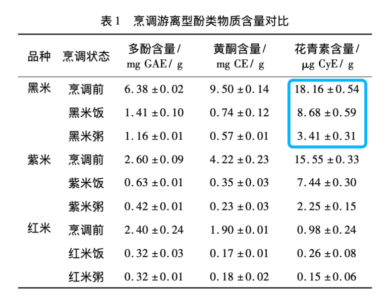 特别提醒大家,最好用黑米焖饭而不是煮粥,这是因为焖饭比煮粥可以更好的保留花青素,研究发现,焖饭花青素保留率可以达到47.8%,但是煮粥花青素保留率却只有18.8%,原始数据见图。