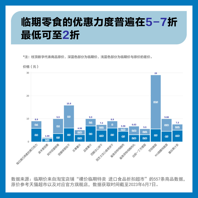 那么,这些愈发被消费者视作是“省钱新锦囊”的临期零食,到底便宜了多少?