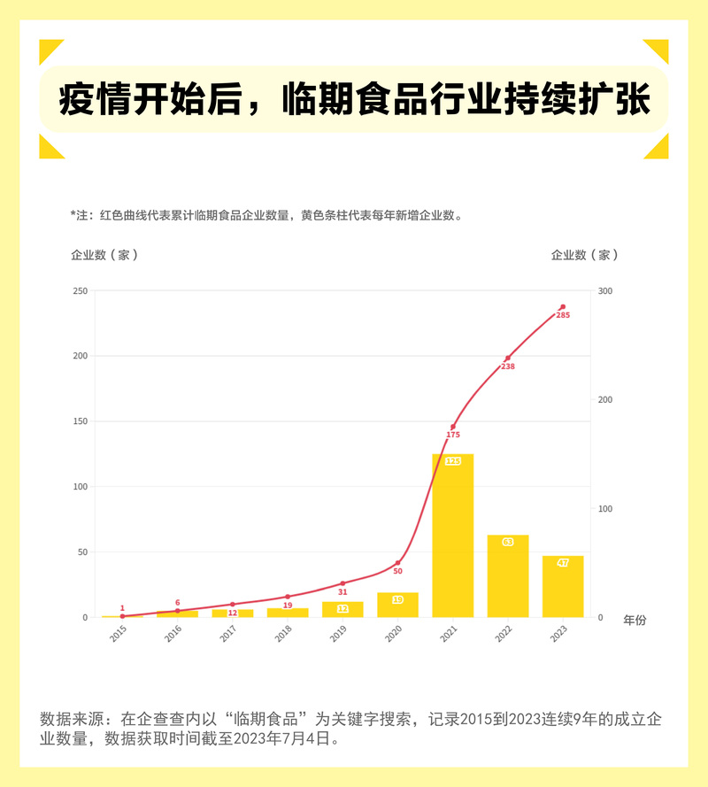 而疫情形势缓和后,大众购物欲回升、社会总体经济回暖,其实很难再次出现大规模的库存积压商品,因而临期食品行业的扩张率巅峰也就停留在了2021年。