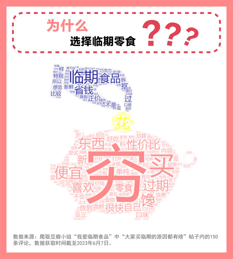 我们爬取了小组内的帖子“大家买临期的原因都有啥”里的150条回应后发现,大部分的回答可以用其中一位“临食工”的话来概括:“婉转地说:省钱,直接地说:穷。”