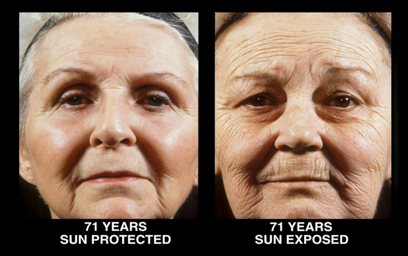 △71岁的双胞胎老人,右边的妹妹一直生活在农村务农,每天接触大量的紫外线;而左边的姐姐一直生活在城市,接触不多也不强烈的紫外线。常年接触大量紫外线的妹妹明显比接触不多不强烈紫外线的姐姐看起来衰老得多。