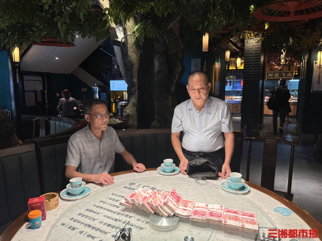 8月17日上午,失主王先生赶到位于长沙雨花区黎托街道的这家饭店,在核对相关信息后,领回16万元现金,他紧握饭店老板彭三顺的手说:“太感谢你们了!”
