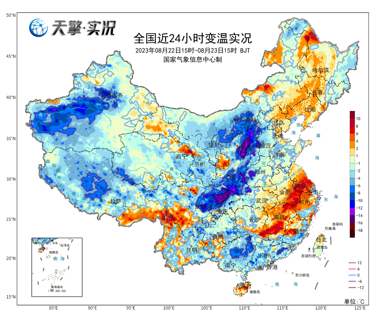 △今天山西至四川一带降温明显。图:国家气象信息中心