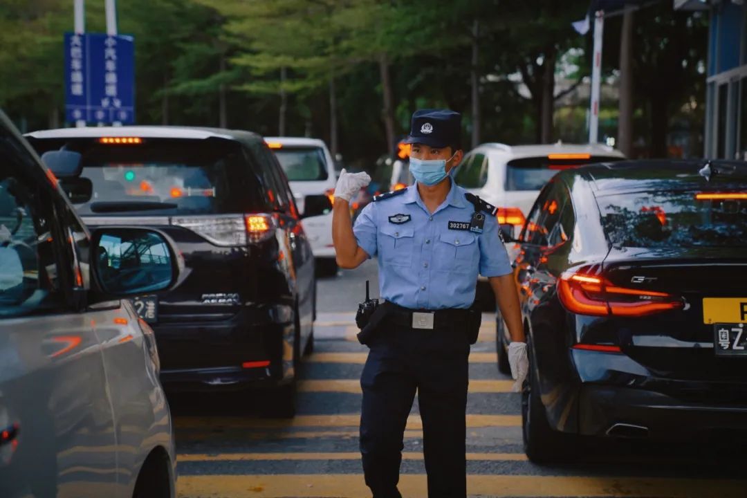 8月20日,深圳湾口岸出入境旅客数量再创今年新高,达12.1万人次,深圳边检总站深圳湾边检站移民管理警察引导过关车辆,确保口岸畅通有序。(郑增浩 摄)