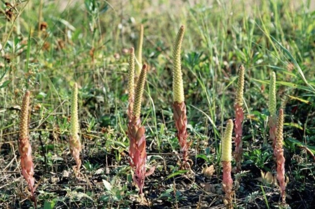 你以为它们要进入土壤生根发芽?不,这种以低调而有益面貌示人的植物,却需要从寄生开始新生。列当种子随风飞扬,意在寻找寄主,它们偏爱蒿类植物,一旦找到就刺入其根系的皮质。与寄主维管组织连接并从中获取水分和营养物质。当寄生关系稳定,列当就在寄主植物根部形成用于储存养分的块茎,再从块茎上长出茎,伸入土壤,开始新一轮生长。