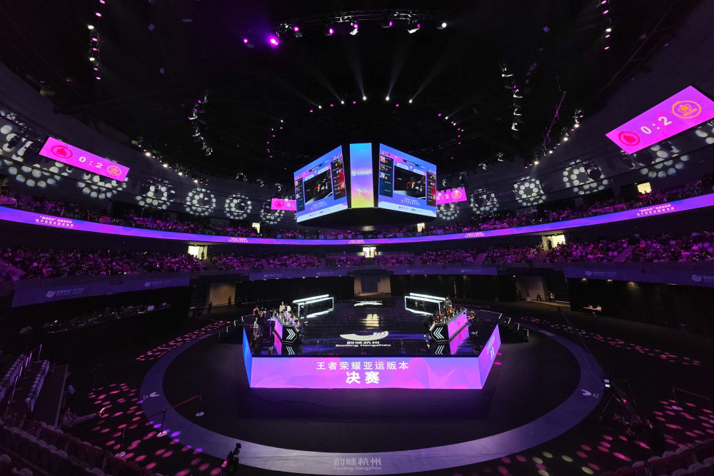 5月21日,在杭州电竞中心拍摄的“韵味杭州”电子竞技全国邀请赛王者荣耀亚运版决赛现场。新华社记者 黄宗治 摄
