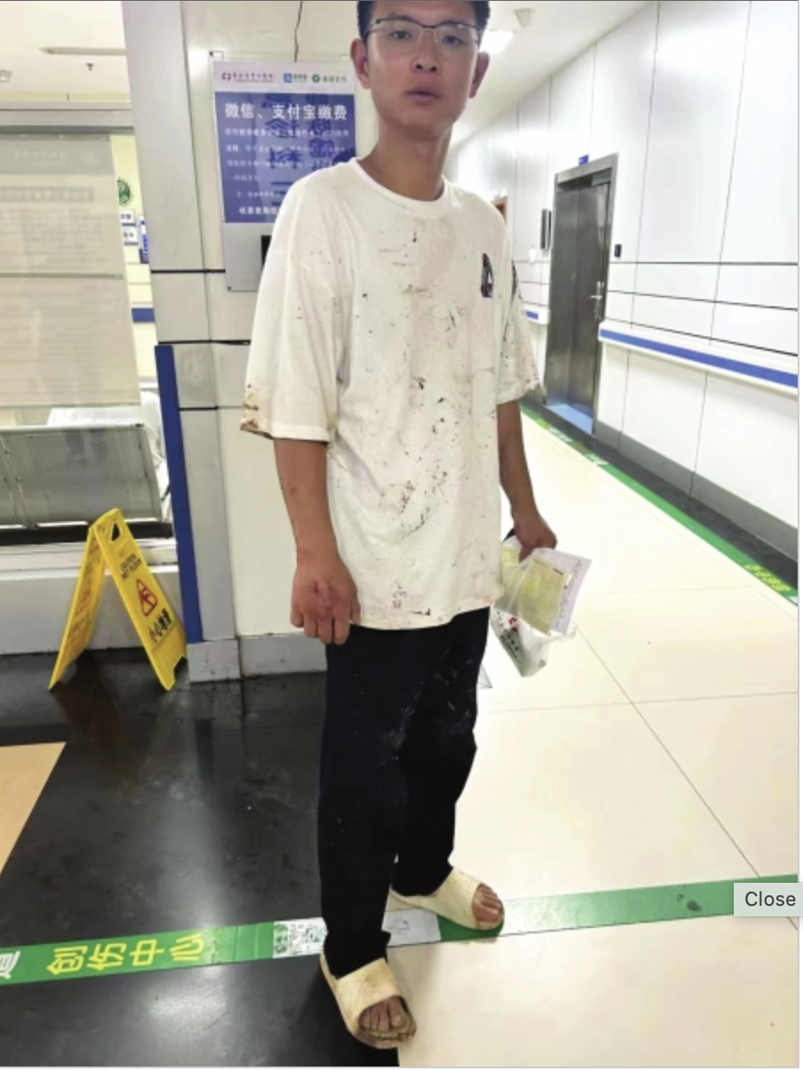 9月19日,长沙,砸车窗救人者张含在医院诊治。图/受访者提供