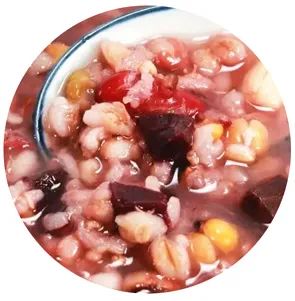 把燕麦胚芽米和水按1∶10混合熬粥。喜欢甜粥可加入红薯、紫薯等;若喜欢咸粥,可加一些干贝、虾、瘦肉等,做成燕麦海鲜粥。