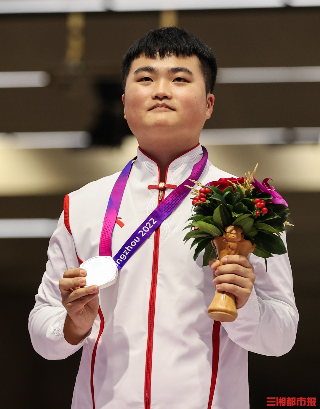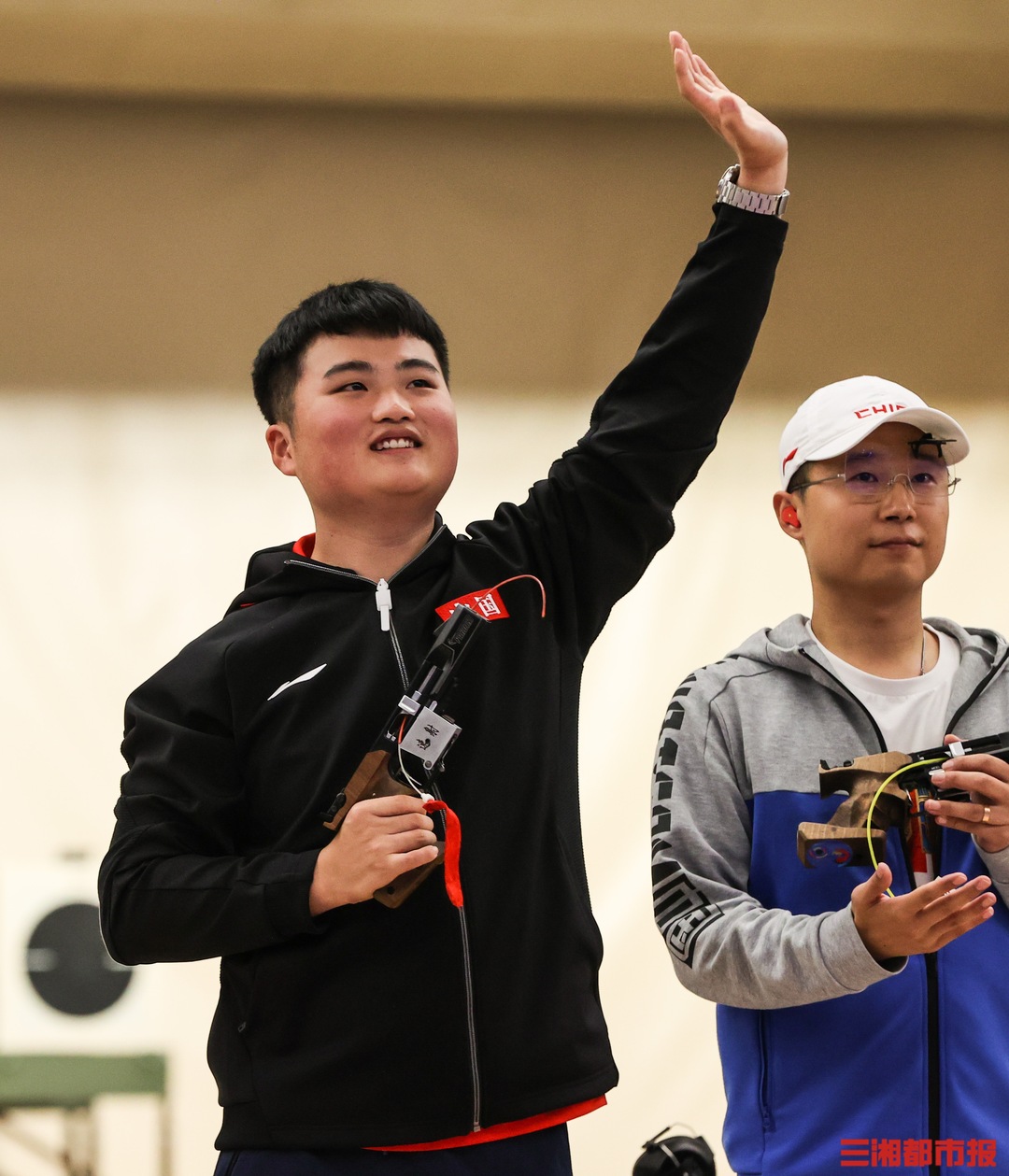 三湘都市报·新湖南客户端9月25日讯(全媒体记者 叶竹)体育湘军亚运“金”喜连连。9月25日上午,在杭州亚运会男子25米手枪速射团体决赛中,株洲“00后”小将刘杨攀与国家队队友李越宏、王鑫杰代表中国队以1765的成绩夺得金牌,打破世界纪录、亚洲纪录、赛会纪录。这也是继当天上午张亮、伊绪帝在男子赛艇单人双桨、四人双桨夺金后,湖南运动员在本届亚运会拿到的第5枚金牌。此外,刘杨攀还在当天下午进行的男子25米手枪速射个人决赛中,夺得银牌。