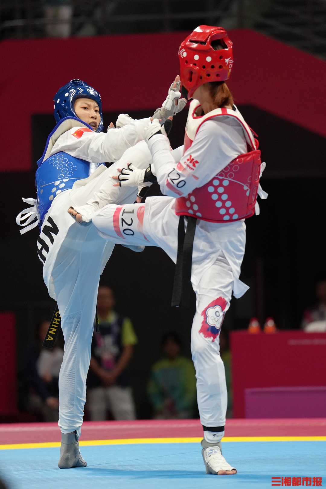 三湘都市报·新湖南客户端9月26日讯(全媒体记者 叶竹)就在张博恒为杭州亚运会体育湘军,夺得第7金的20分钟前,9月26日下午,在本届亚运会跆拳道女子57公斤级决赛中,湖南运动员骆宗诗以2比0战胜中国台北运动员罗嘉翎,摘得金牌,成功卫冕,成为第6位夺得本届亚运会金牌的湖南运动员。