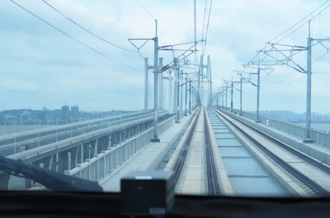 8月31日,试运行列车经过福厦高铁泉州湾跨海大桥。新华社记者 林善传 摄