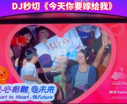 甚至连观众也逃不过DJ的“助攻”。10月2日,杭州亚运会乒乓球女子双打决赛前,现场互动时有观众现场求婚,DJ秒切《今天你要嫁给我》,官方是懂浪漫的。