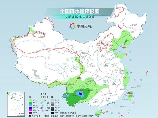今天(10月13日),我国西南地区仍有较强降雨,局地有暴雨。明天,西南地区降雨减弱,新疆雨雪天气发展。气温方面,15日前后,内蒙古中东部、东北地区等地气温下降4~8℃,局地10℃,公众请适时添衣保暖,谨防感冒。