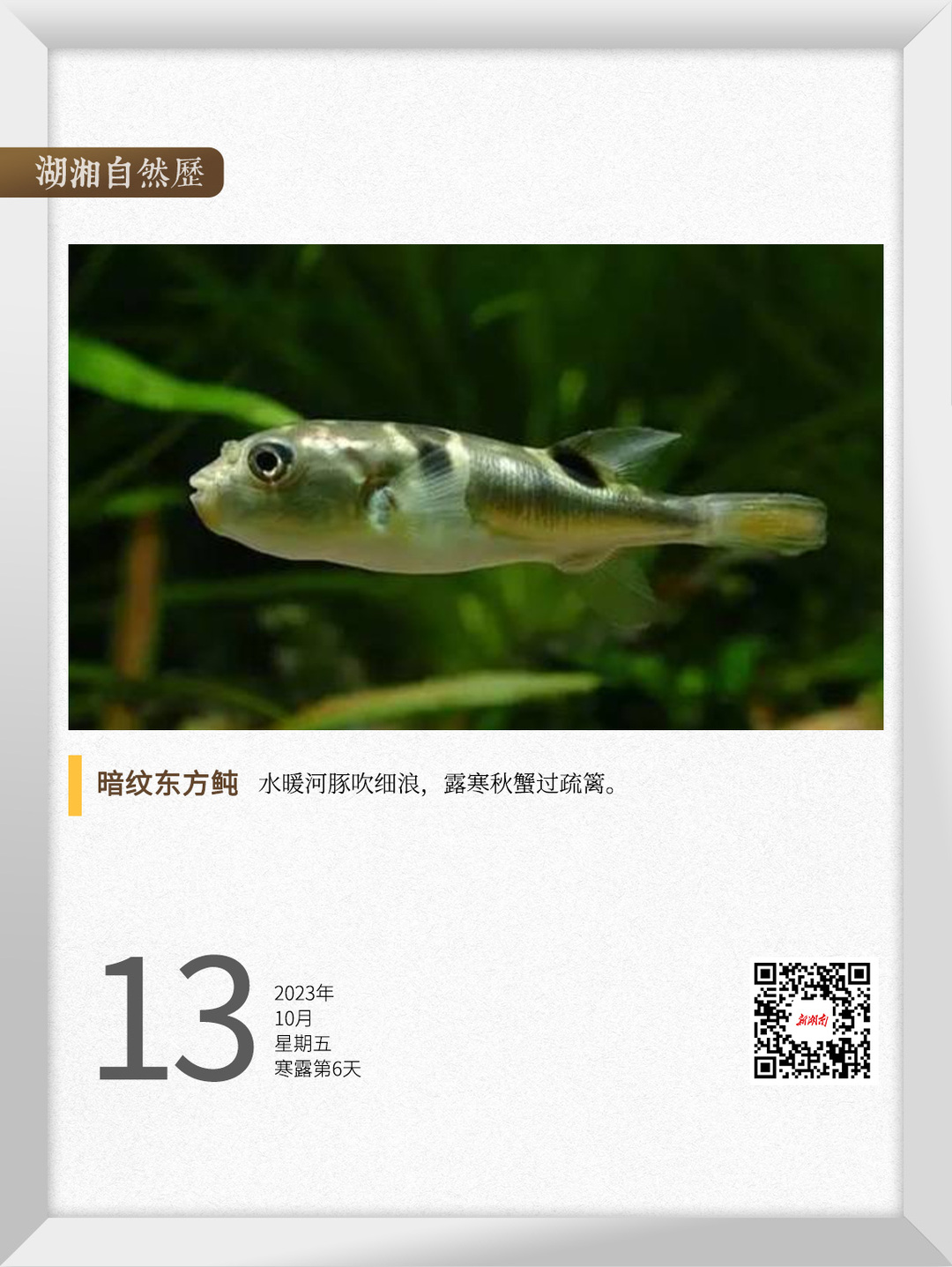 暗纹东方鲀 水暖河豚吹细浪,露寒秋蟹过疏篱。