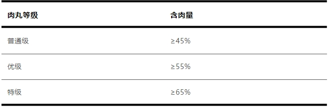 除了可能执行《速冻调制食品》标准的同时提高了纯肉含量之外,还可能会执行《SB/T 10610-2011 肉丸》的标准,该标准对肉丸的等级做了划分。只要是按照《肉丸》执行标准生产的肉丸,最低纯肉含量为45%。肉含量增加了,价格自然也会增加。