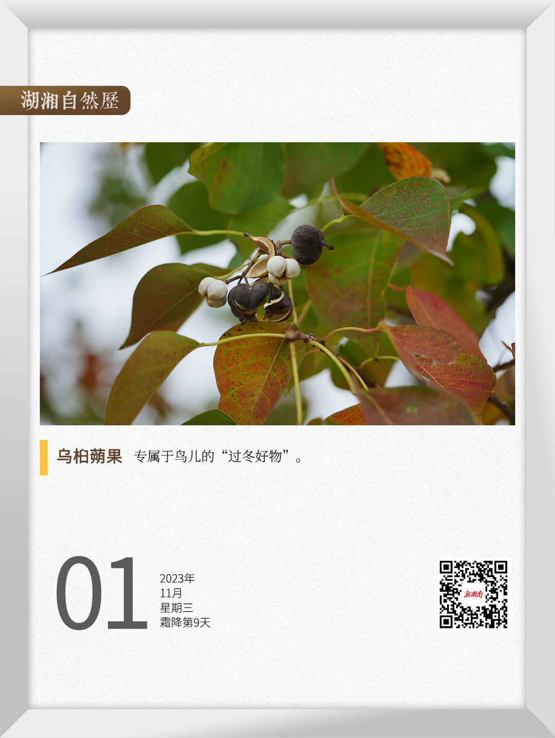 乌桕种子饱含油脂,不仅是鸟类过冬的必备“补品”,也是重要的经济作物。