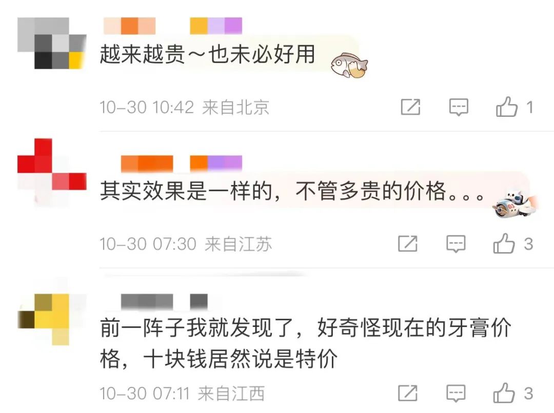“某品牌抗敏感牙膏,现在卖7.58元,记得原来只需要两三块钱;曾经几块钱的一款牙膏,现在‘升级’后也卖到20元了。”小倪提到。