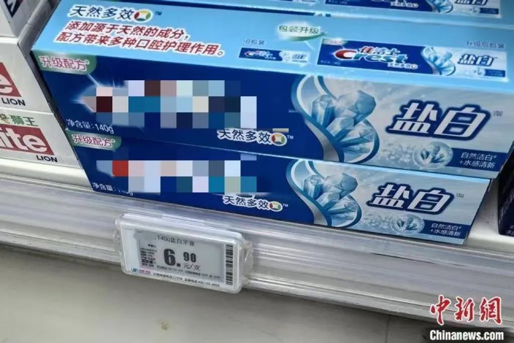 价格相对较低的牙膏被陈列在货架底层来源:中国新闻网