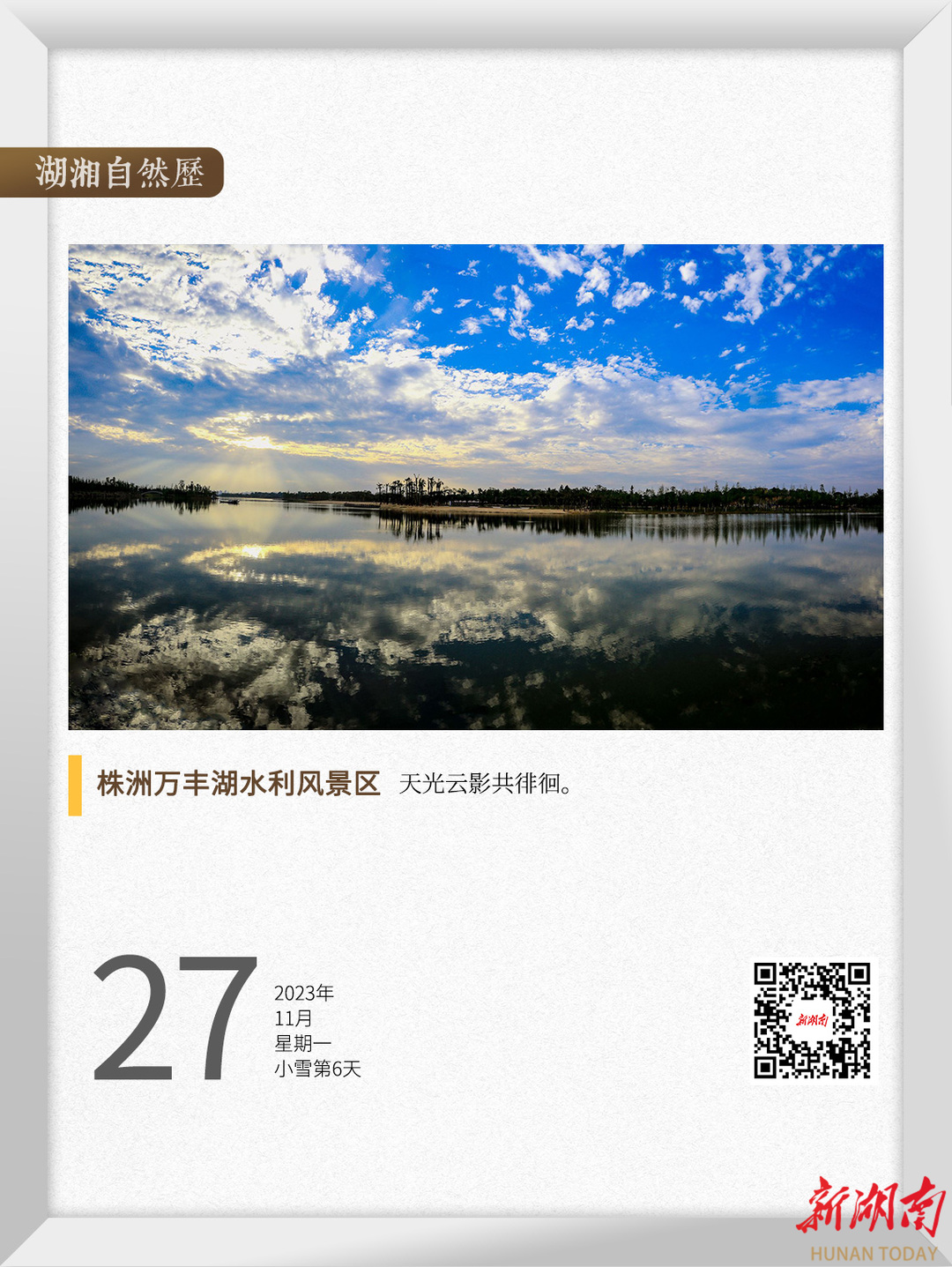 水,滋养万千生灵。湖南雨量充沛,河流纵横,丰富的水资源孕育了众多水利风景区,全省有43处国家水利风景区和52处省级水利风景区。即日起,《湖湘自然历》推出“水光潋滟”系列,与您一同欣赏湖湘水景。
