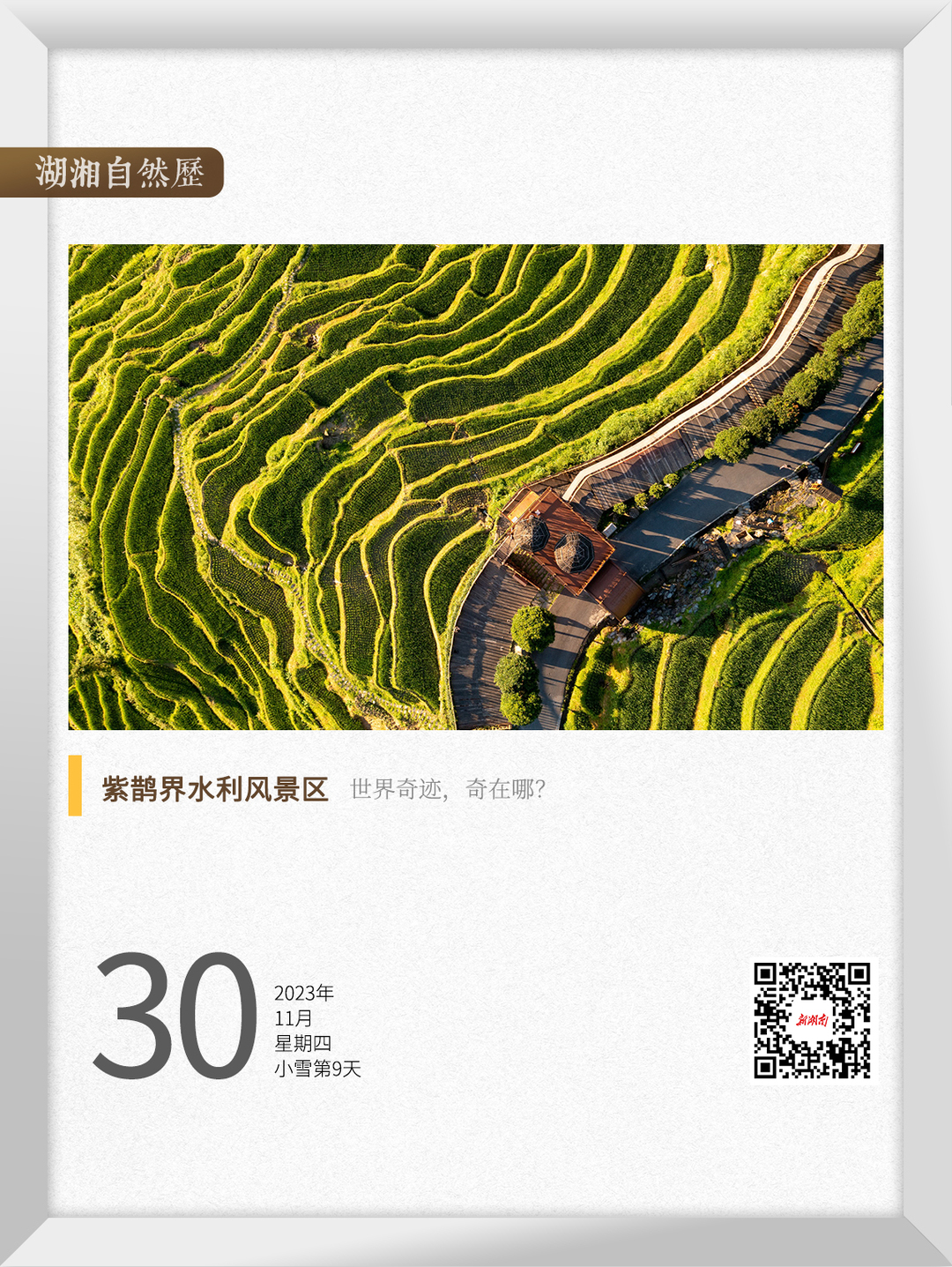 “山有多高,水有多高,田就有多高。”紫鹊界,书写着世界水利灌溉工程的奇迹。2014年,紫鹊界成为中国首批世界灌溉工程遗产,也是目前湖南唯一的世界灌溉工程遗产。